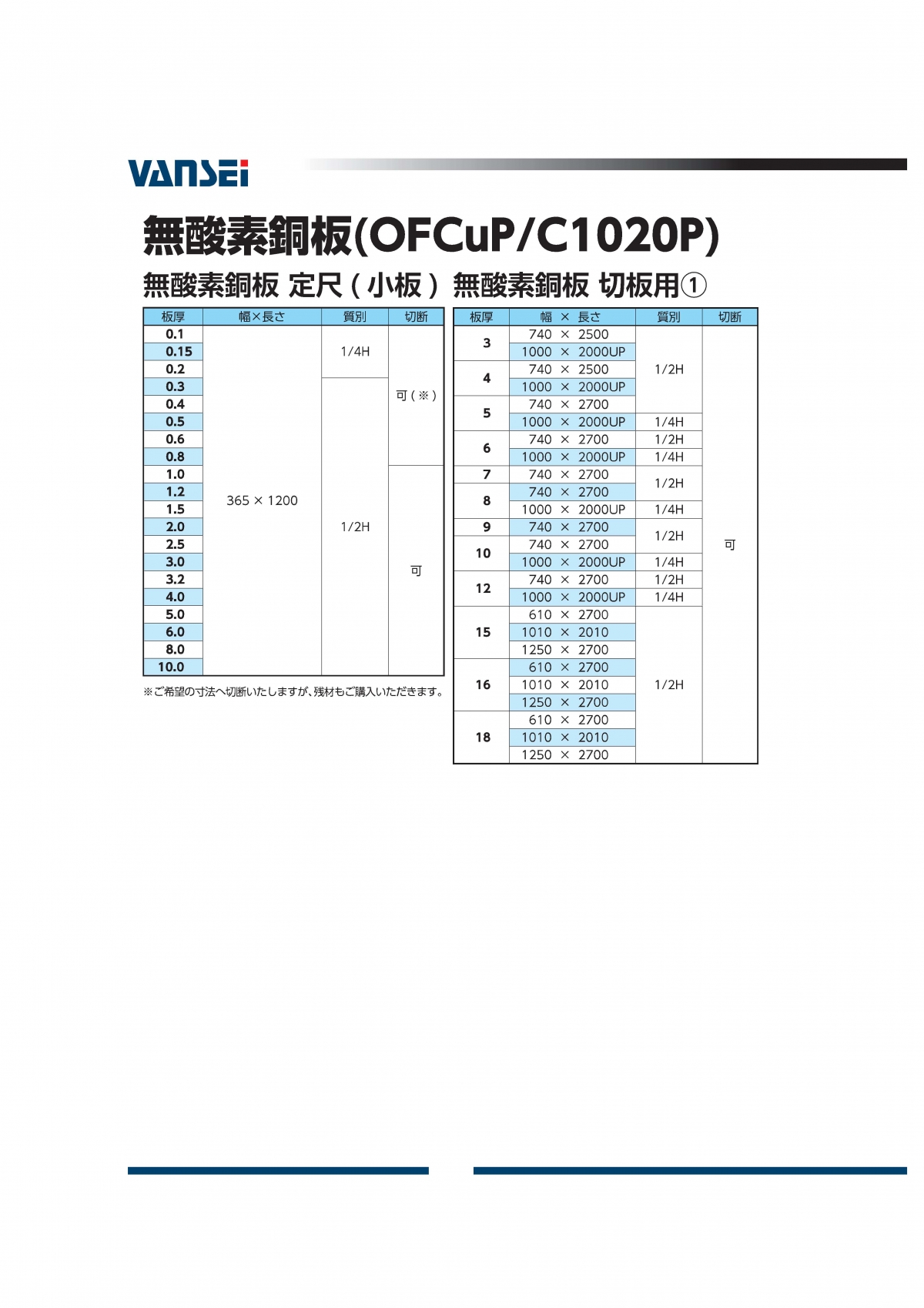 Cu(銅)は99.96%以上を含む純銅であり、電気・熱伝導性に優れ、かつ良好な曲げ加工性、絞り加工性が特徴的です。
